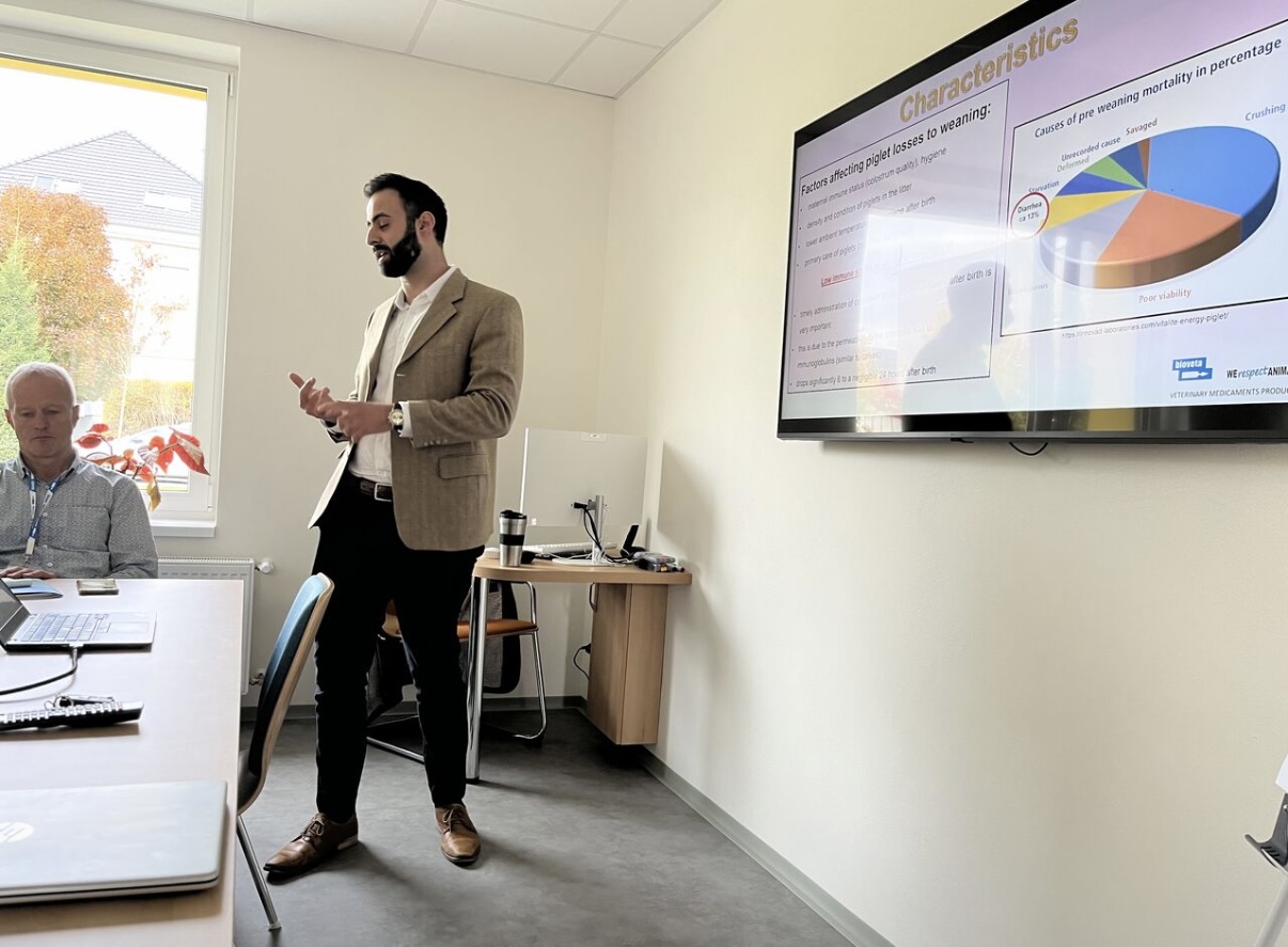 Popoludňajšia časť programu bola venovaná odborným prednáškam. Za našu spoločnosť vystúpil produktový manažér MVDr. Ronen Hoikhman, Ph.D., ktorý viedol prezentáciu na tému prevencia bežných enterálnych ochorení u novorodených prasiatok. Popoludňajší blok ďalej doplnili prezentácie zamerané na praktické využitie laboratórnych testov a na prístupy k riešeniu vybraných respiračných ochorení ošípaných.