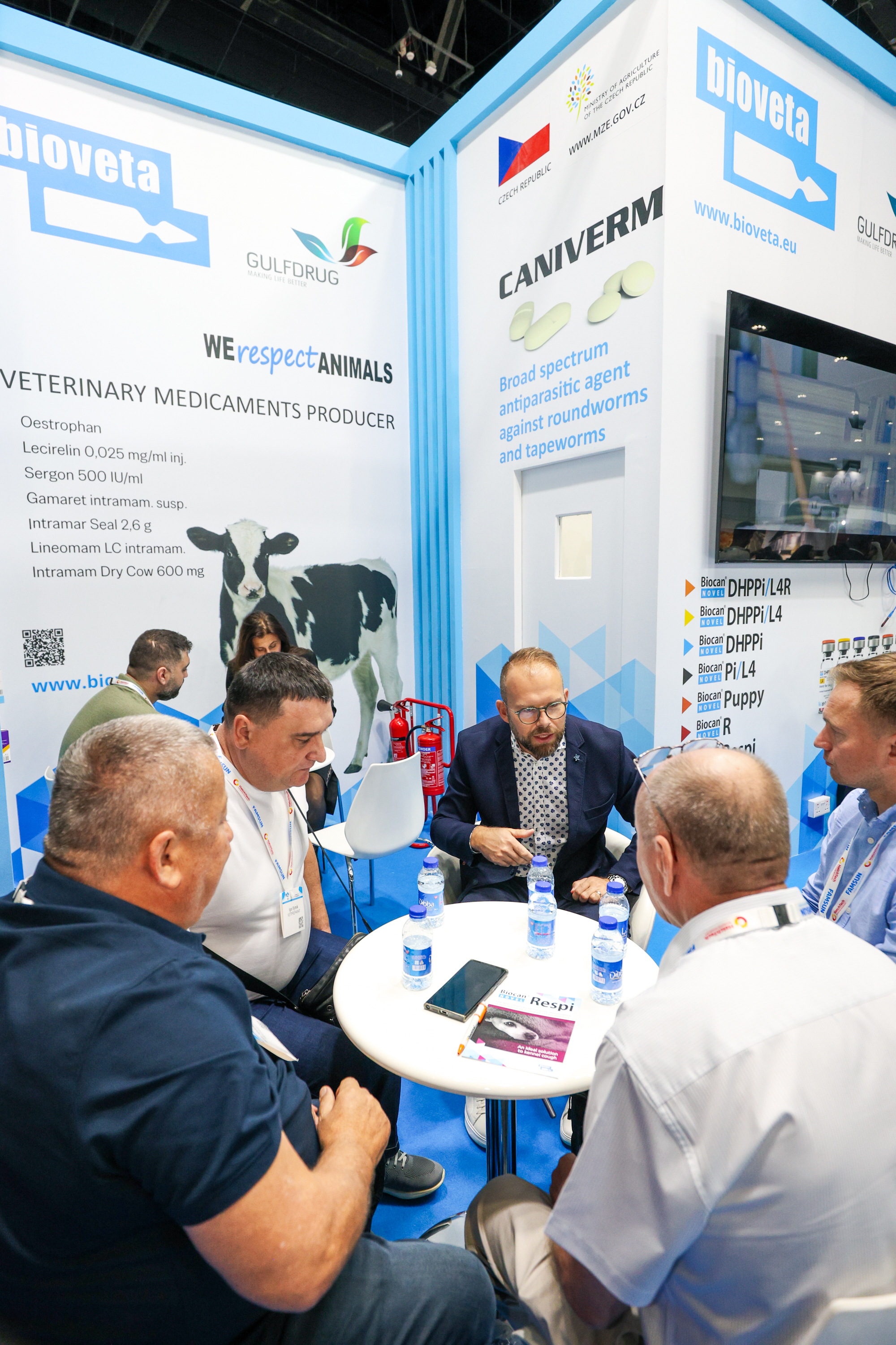 Účasť Biovety spoločne s naším miestnym partnerom, spoločnosťou Gulf Drug LLC, nám poskytla jedinečnú príležitosť stretnúť sa s novými obchodnými partnermi, upevniť existujúce vzťahy, hľadať nové trhové príležitosti a prezentovať novinky, ako aj dlhodobo zavedené produkty. Pripravili sme atraktívnu expozíciu s prezentáciou nášho portfólia pre spoločenské a predovšetkým hospodárske zvieratá, ktorého ťažisko tvorili najmä imunologické a hormonálne prípravky pre hovädzí dobytok, ošípané, hydinu a králiky. Priamo na mieste našu spoločnosť reprezentovali oblastní riaditelia Ing. Ján Bittner a Věra Chlupová.