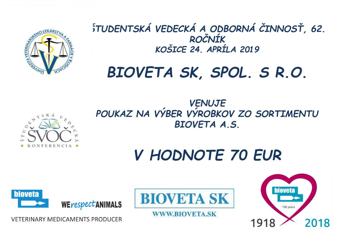 Bioveta podporila 62. ročník Študentskej vedeckej a odbornej činnosti, ktorá sa konala na UVLF v Košiciach hodnotnými poukazmi vo všetkých piatich kategóriách. Oceneným srdečne gratulujeme.
