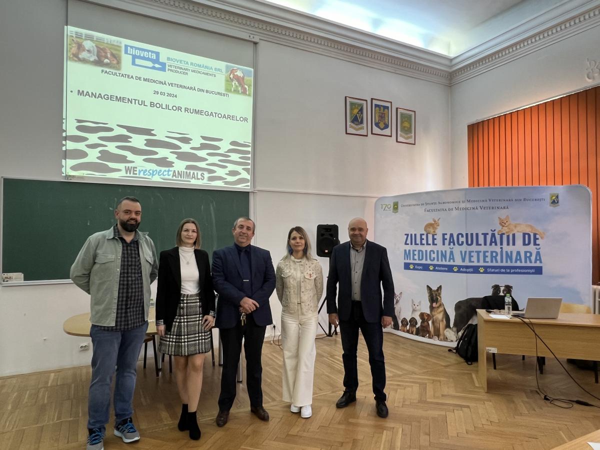 V nadväznosti na tradíciu minulých rokov sa spoločnosť Bioveta Romania aktívne podieľa na školení študentov fakúlt veterinárneho lekárstva v Rumunsku. Dňa 29. marca 2024 sme mali možnosť byť prítomní na Fakulte veterinárneho lekárstva v Bukurešti na sympóziu s témou "NOVÉ KLINICKO - TERAPEUTICKÉ POSTUPY V MANAŽMENTE CHORÔB HOSPODÁRSKYCH ZVIERAT". Akcie sa zúčastnili študenti 6. ročníka magisterského stupňa. Počas štyroch hodín sa študenti zúčastnili dvoch prezentácií zameraných na hlavné choroby vyskytujúce sa v chovoch ošípaných a hovädzieho dobytka v Rumunsku, vrátane predstavenia troch noviniek sortimentu Bioveta, a.s., a to Biosuis ParvoEry L(7), Biobos Respi 5 a Ketoprofen Bioveta 100 mg/ml a ich použitie v praxi.