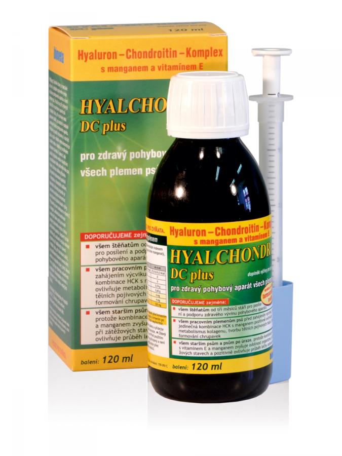 Prípravok Hyalchondro DC je určený na podporu správneho vývoje a funkcie pohybového aparátu u všetkých plemien psov. Vhodný je pri zvýšených nárokoch na pohybový aparát psov v období rastu, pri výcvikovej alebo pracovnej záťaži, po úrazoch na podporu a obnovu funkcie pohybového aparátu.