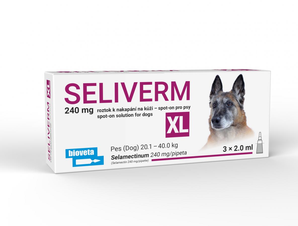 Hlavná stránka Prípravky Veterinárne prípravky SELIVERM 240 mg roztok na kvapkanie na kožu – spot-on pre psy XL